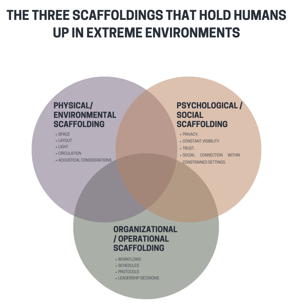What Holds Humans Up: The Three Scaffoldings of Extreme Environments
